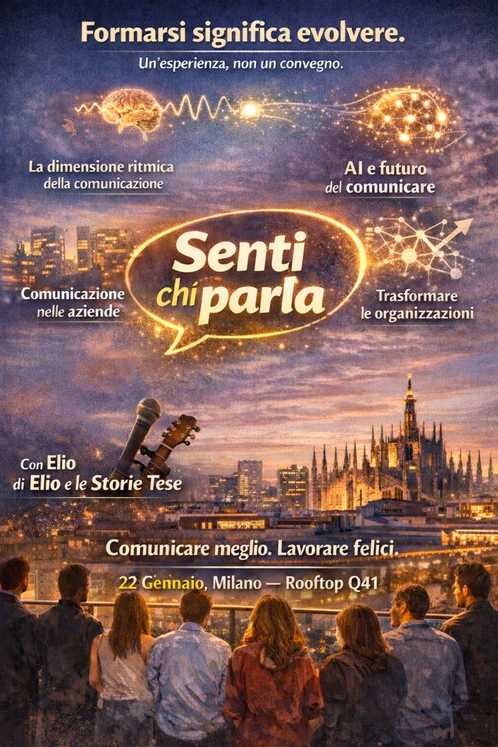 Manca davvero pochissimo al nostro evento "Senti chi parla", con Elio, il 22 gennaio dalle 17:30 alle 19:30 sul Rooftop Q41, in via M.F. Quintiliano 41 a Milano.